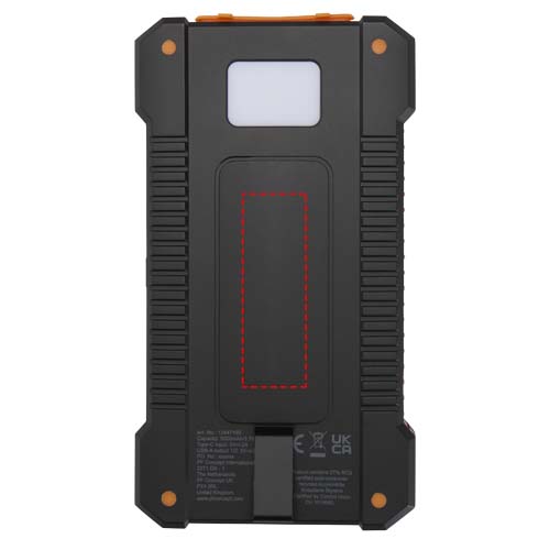 Productinformatie "Altair robuuste powerbank op zonne-energie van 5000 mAh 10 W met ingebouwde zaklamp van gerecycled plastic"