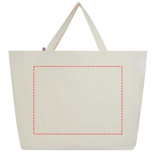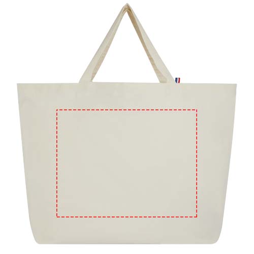 Deze draagtas met grote inhoud is gemaakt van de beste, 100% gerecyclede materialen. Hij is gemaakt voor dagelijks gebruik en geschikt om zware boeken of boodschappen in mee te nemen. De 200 g/m² gerecyclede katoen/polyester mix zorgt voor duurzaamheid en betrouwbaarheid, waardoor de tas een weerstand heeft tot 14kg gewicht. De garens komen uit Azië, maar het weven, spinnen en de productie gebeurt allemaal in Frankrijk.
